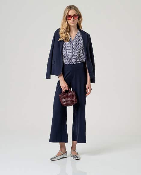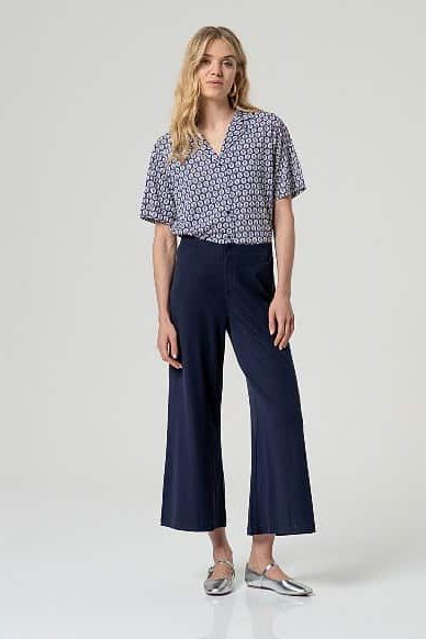 Pantalón de tiro medio y pierna recta ligeramente amplia. Diseño de largo crop con cinturilla estructurada, cierre frontal de cremallera y botón, y cintura elástica en la espalda. Bolsillos laterales integrados y bajo recto. Pantalón recto crop con cinturon.